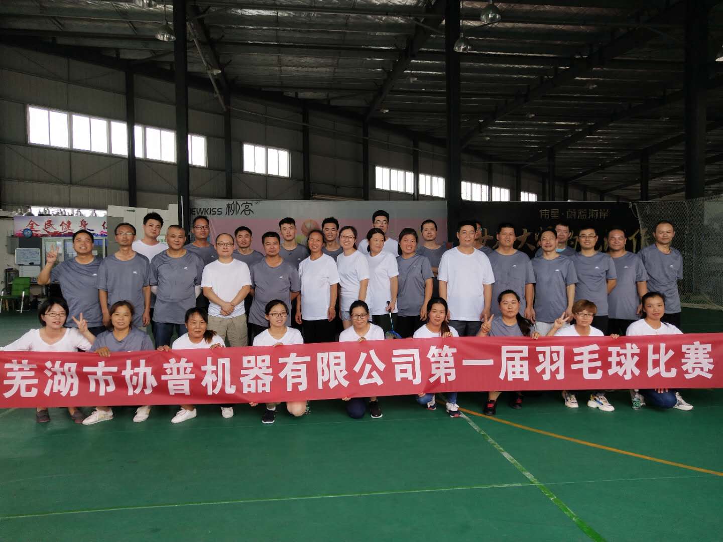 2018年8月18日,協(xié)普機器有限公司第一屆職工羽毛球比賽圓滿結束,各部門近50名職工踴躍參加比賽。