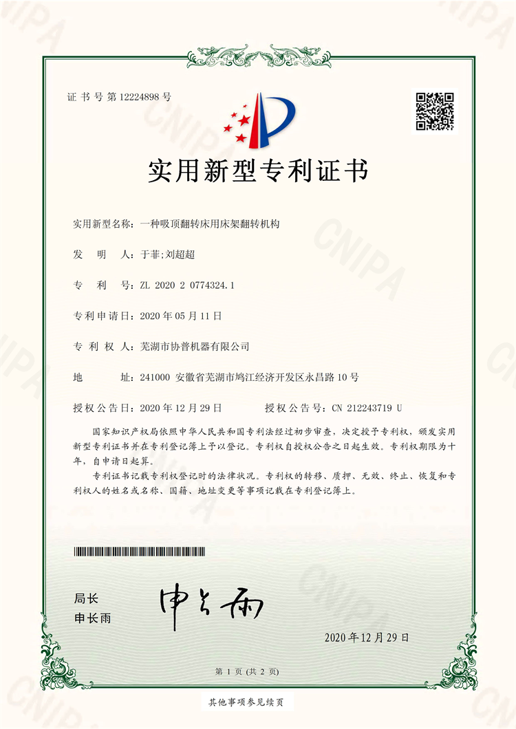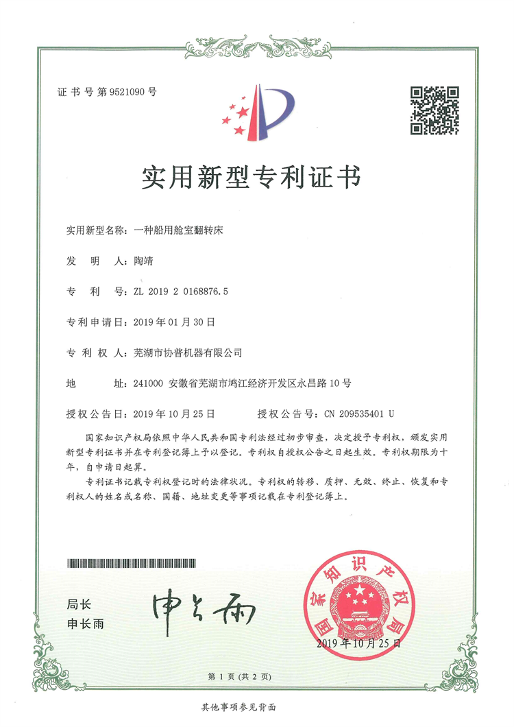 實(shí)用專利證書