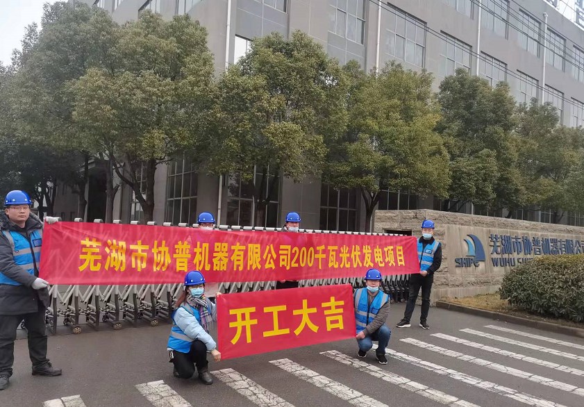 2022年2月18日上午9:28分,蕪湖市協(xié)普機(jī)器有限公司200千瓦屋頂光伏發(fā)電項(xiàng)目在協(xié)普廠區(qū)正式啟動(dòng)。本項(xiàng)目攜手蕪湖易旭新能源有限責(zé)任公司合作承接,自去年10月雙方簽核項(xiàng)目合同,至報(bào)審并于去年年底最終順利審核通過。